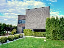 Арт. 123498599 Современный дом интересной архитектуры с видом на березовую рощу, реку и Ново-Иерусалимский Монастырь. Новорижское или Волоколамское шоссе, 40 км от МКАД, Никулино.Проект архитектора и дизайнера Ивана Шалмина, реализован под его авторским надзором.Дом 454 кв.м. (площадь жилого помещения 230 м2) фундамент свайно-ростверковый + монолитная плита, утеплен пеноплексом. Стены первого этажа - полнотелый кирпич, дополнительно утеплены и облицованы клинкером. Второго этажа - каркасные. базальтовый утеплитель 200 мм, облицованы планкеном из лиственницы. Межэтажные перекрытия - деревянные балки Ультролам 300х50. Эксплуатируемая эко-кровля с внутренним водостоком (3 воронки) и защитной мембраной из жидкой резины, засеяна газонной травой.Интерьеры выдержаны в стиле дорогой минимализм. Визуальный ряд построен на гармоничном сочетании контрастных по цвету и фактуре материалов - теплое дерево, яркий белый глянец, дымчатое стекло. Витражные окна и раздвижные стены создают иллюзию единого пространства с участком, а авторская система освещения - изюминка проекта. Жилая зона 230 кв.м. с простой и оч.удобной планировкой:1 этаж, прихожая, гардеробная, 2-светное зонированное пространство (гостиная, столовая, кухня) с выходом на палубную веранду, где обустроено барбекью и диванная. Гараж на 2 м/м, котельная, прачечная с маленькой кухней, санузел.2 этаж: холл-библиотека, 4 спальни, 3 санузла, 2 балкона.3 этаж: эксплуатируемая кровля - мягкая лужайка для дуракаваляния и любования природой.Коммуникации: электричество 15 квт(деревенский тариф), магистральный газ, водопровод, канализация - центральные городские, проводной интернет.Чудесный ухоженный участок 15 соток. Ландшафтный дизайн с парадной и приватной зонами, редкими породами деревьев, уютными уголками, фруктовым садом, ягодником, огородом. Граничит с березовой рощей, до берега реки 200м.Деревня небольшая, уютная, с солидным и доброжелательным окружением. Расположена в излучине реки Истры, рядом с одноименным городом, Ново-Иерусалимским Монастырем и музейным комплексом. Здесь тихо, красиво и безопасно, воздух целебен, вода чиста - приезжайте и убедитесь в этом сами!