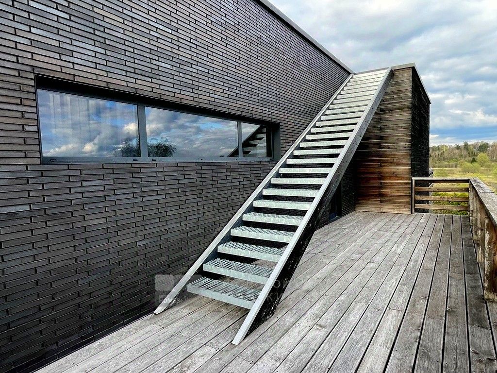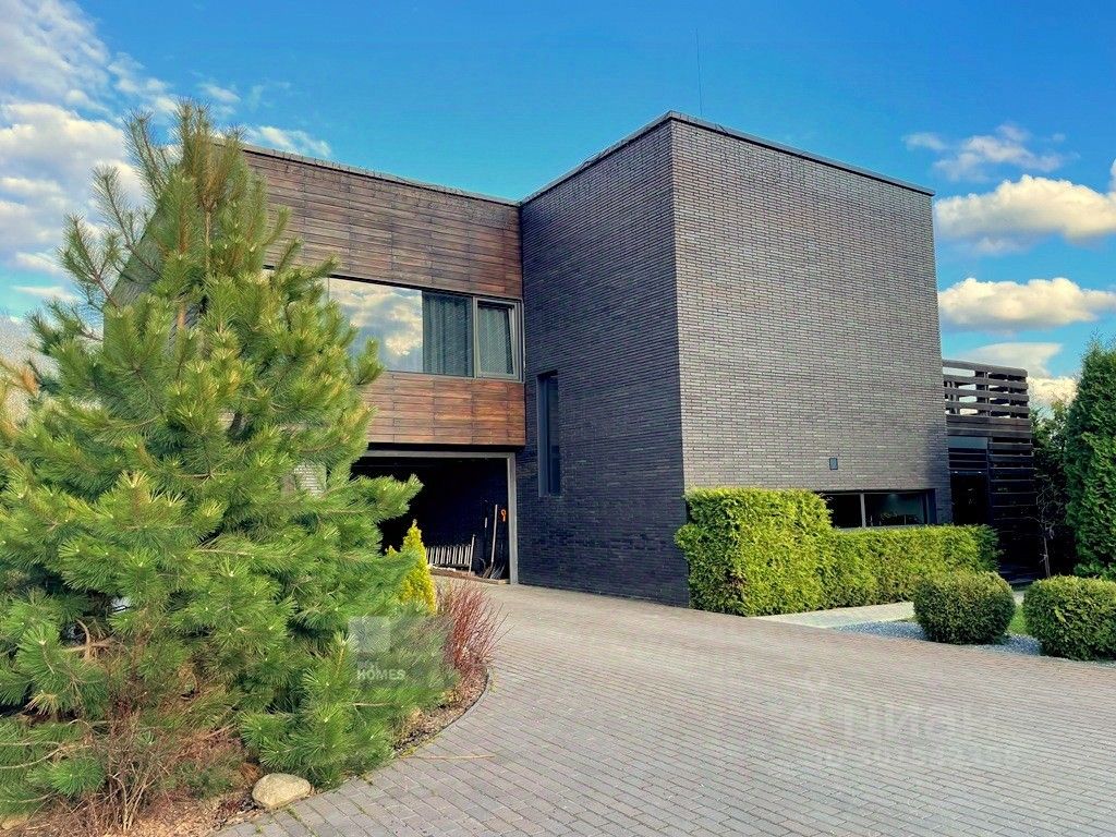 Арт. 64336128 Современный дом интересной архитектуры с видом на березовую рощу, реку и Ново-Иерусалимский Монастырь. Новорижское или Волоколамское шоссе, 40 км от МКАД, Никулино. Проект архитектора и дизайнера Ивана Шалмина, реализован под его авторским надзором. Дом 454 кв.м. (площадь жилого помещения 230 м2) фундамент свайно-ростверковый + монолитная плита, утеплен пеноплексом. Стены первого этажа - полнотелый кирпич, дополнительно утеплены и облицованы клинкером. Второго этажа - каркасные. базальтовый утеплитель 200 мм, облицованы планкеном из лиственницы. Межэтажные перекрытия - деревянные балки Ультролам 300х50. Эксплуатируемая эко-кровля с внутренним водостоком (3 воронки) и защитной мембраной из жидкой резины, засеяна газонной травой.