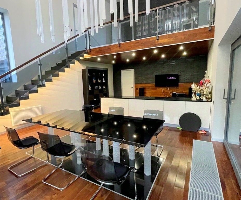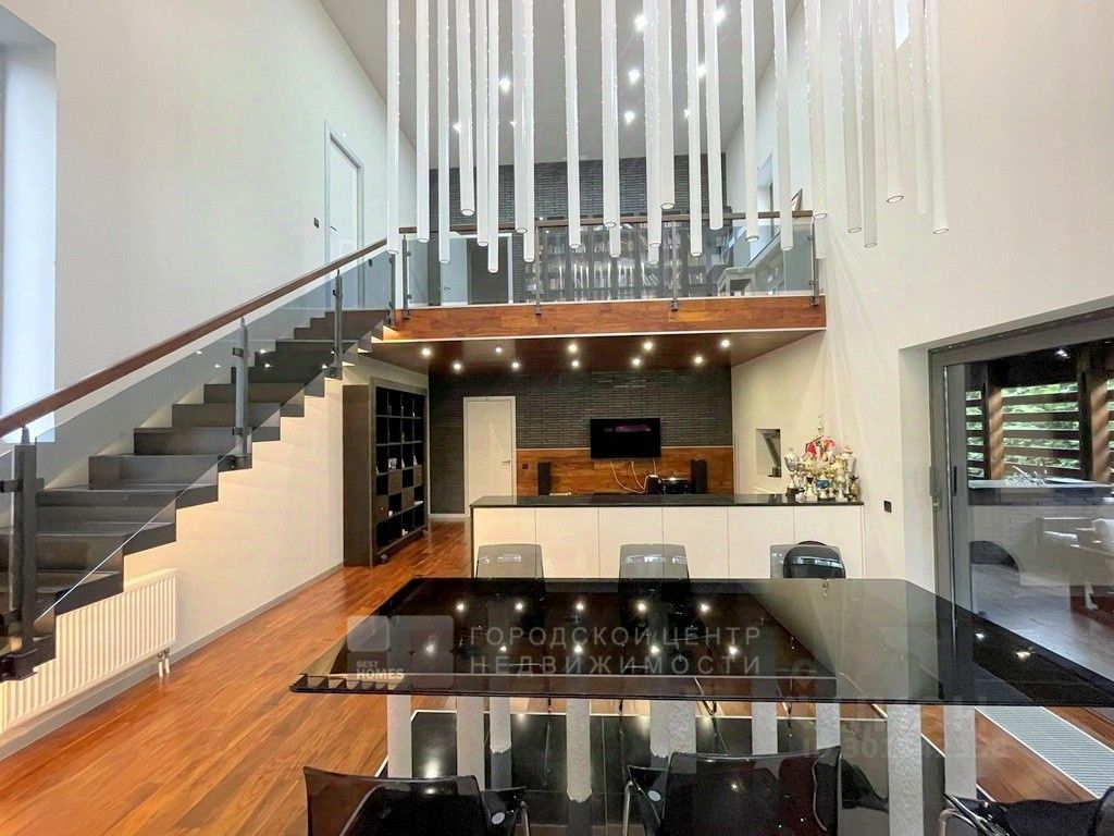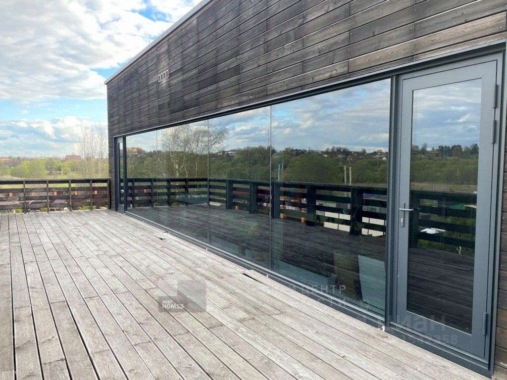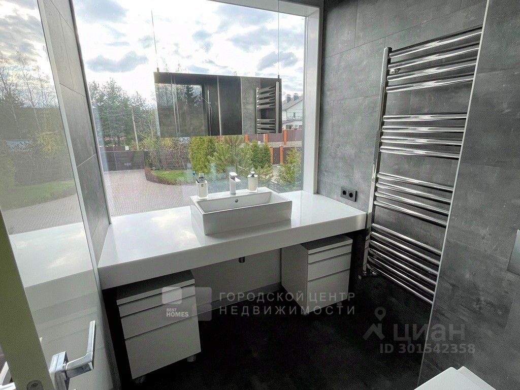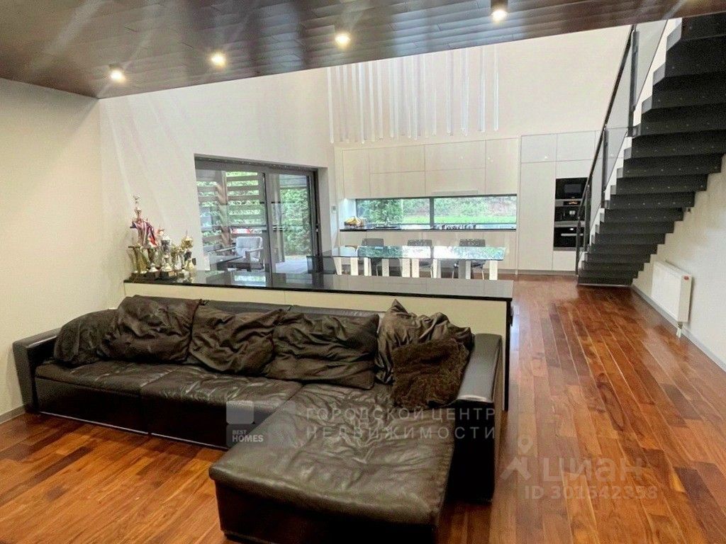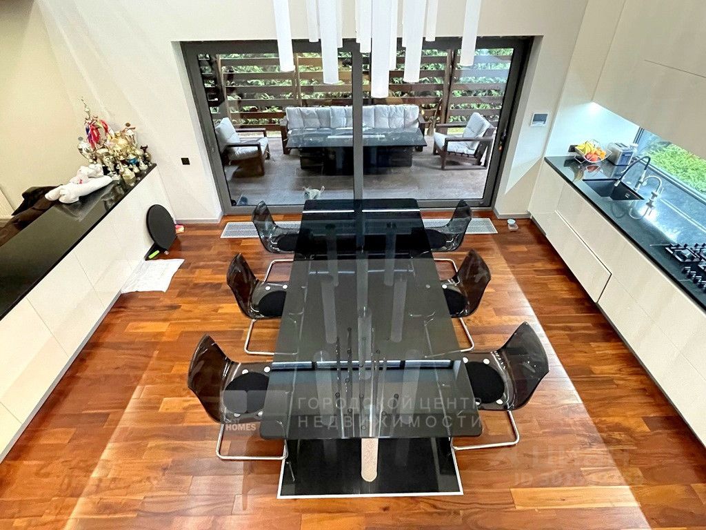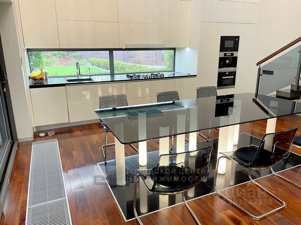 Арт. 64336128 Современный дом интересной архитектуры с видом на березовую рощу, реку и Ново-Иерусалимский Монастырь. Новорижское или Волоколамское шоссе, 40 км от МКАД, Никулино. Проект архитектора и дизайнера Ивана Шалмина, реализован под его авторским надзором. Дом 454 кв.м. (площадь жилого помещения 230 м2) фундамент свайно-ростверковый + монолитная плита, утеплен пеноплексом. Стены первого этажа - полнотелый кирпич, дополнительно утеплены и облицованы клинкером. Второго этажа - каркасные. базальтовый утеплитель 200 мм, облицованы планкеном из лиственницы. Межэтажные перекрытия - деревянные балки Ультролам 300х50. Эксплуатируемая эко-кровля с внутренним водостоком (3 воронки) и защитной мембраной из жидкой резины, засеяна газонной травой. Интерьеры выдержаны в стиле дорогой минимализм. Визуальный ряд построен на гармоничном сочетании контрастных по цвету и фактуре материалов - теплое дерево, яркий белый глянец, дымчатое стекло. Витражные окна и раздвижные стены создают иллюзию единого пространства с участком, а авторская система освещения - изюминка проекта. Жилая зона 230 кв.м. с простой и оч.удобной планировкой: 1 этаж, прихожая, гардеробная, 2-светное зонированное пространство (гостиная, столовая, кухня) с выходом на палубную веранду, где обустроено барбекью и диванная. Гараж на 2 м/м, котельная, прачечная с маленькой кухней, санузел. 2 этаж: холл-библиотека, 4 спальни, 3 санузла, 2 балкона. 3 этаж: эксплуатируемая кровля - мягкая лужайка для дуракаваляния и любования природой. Коммуникации: электричество 15 квт(деревенский тариф), магистральный газ, водопровод, канализация - центральные городские, проводной интернет. Чудесный ухоженный участок 15 соток. Ландшафтный дизайн с парадной и приватной зонами, редкими породами деревьев, уютными уголками, фруктовым садом, ягодником, огородом. Граничит с березовой рощей, до берега реки 200м. Деревня небольшая, уютная, с солидным и доброжелательным окружением. Расположена в излучине реки Истры, рядом с одноименным городом, Ново-Иерусалимским Монастырем и музейным комплексом. Здесь тихо, красиво и безопасно, воздух целебен, вода чиста - приезжайте и убедитесь в этом сами!