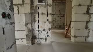 Для строительства каркаса дома использовались газосиликатные блоки с утеплителем и облицовка кирпичом. Монолитный ленточный фундамент, заглубленный на глубину промерзания 1.8 м. Газ заведен в дом, установлено и подключено газовое оборудование, одноконтурный котел Protherm, установлены радиаторы отопления, электрика и коммуникации разведены по дому согласно плану. Всю разводку по дому делали специалисты в своей области - газ, электричество, канализация. Сделана полусухая стяжка пола.