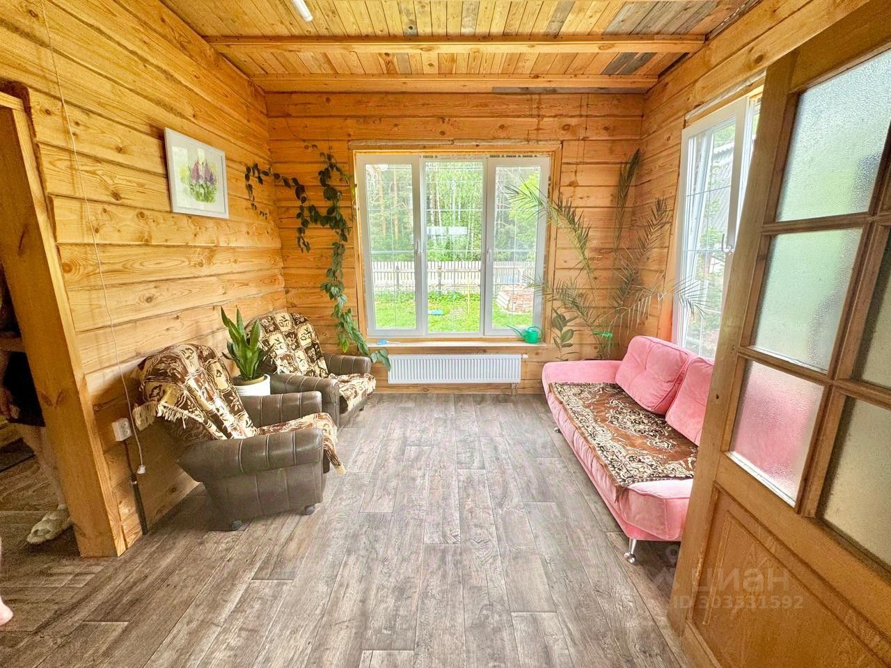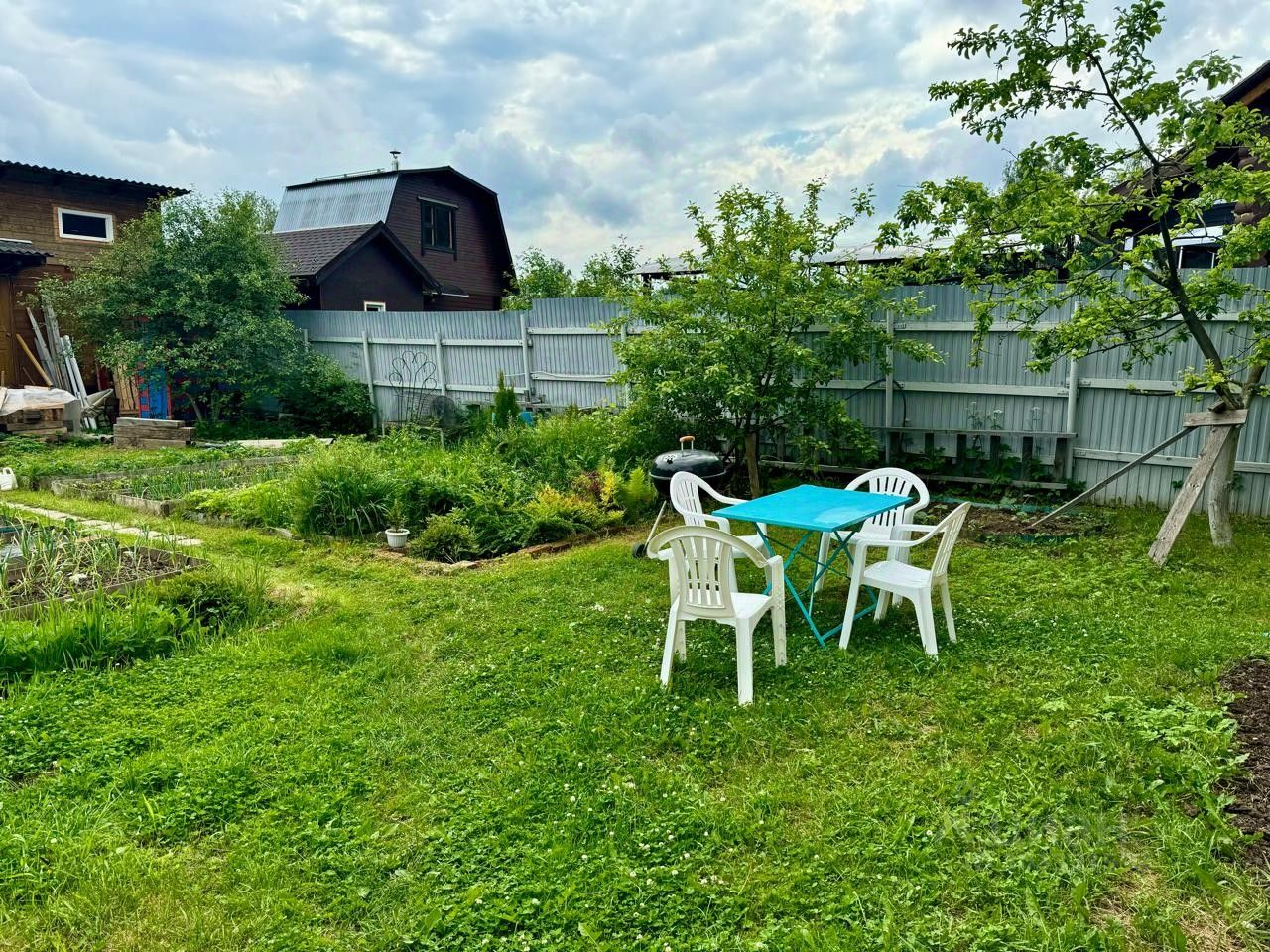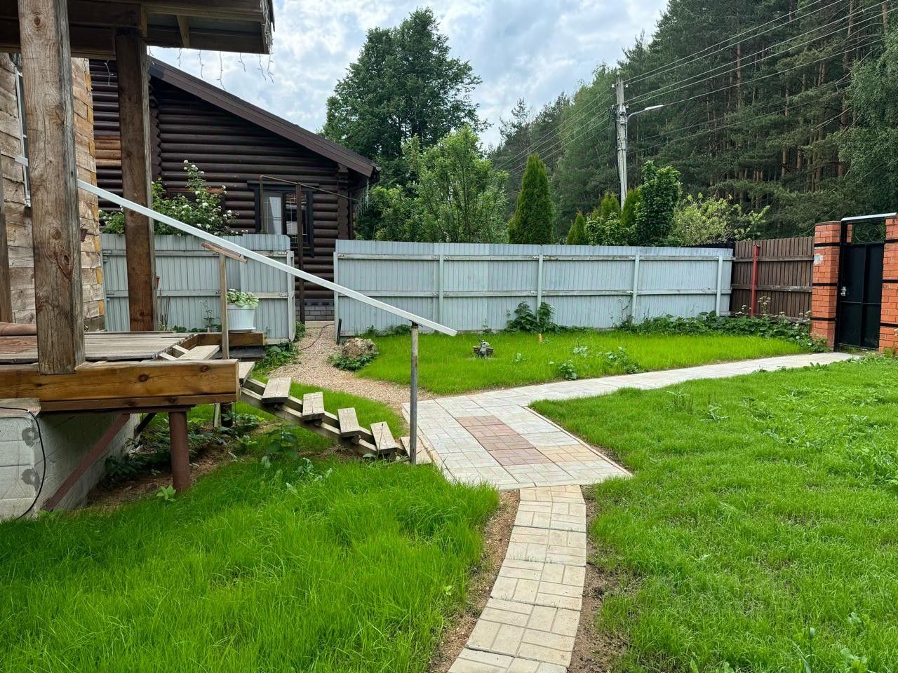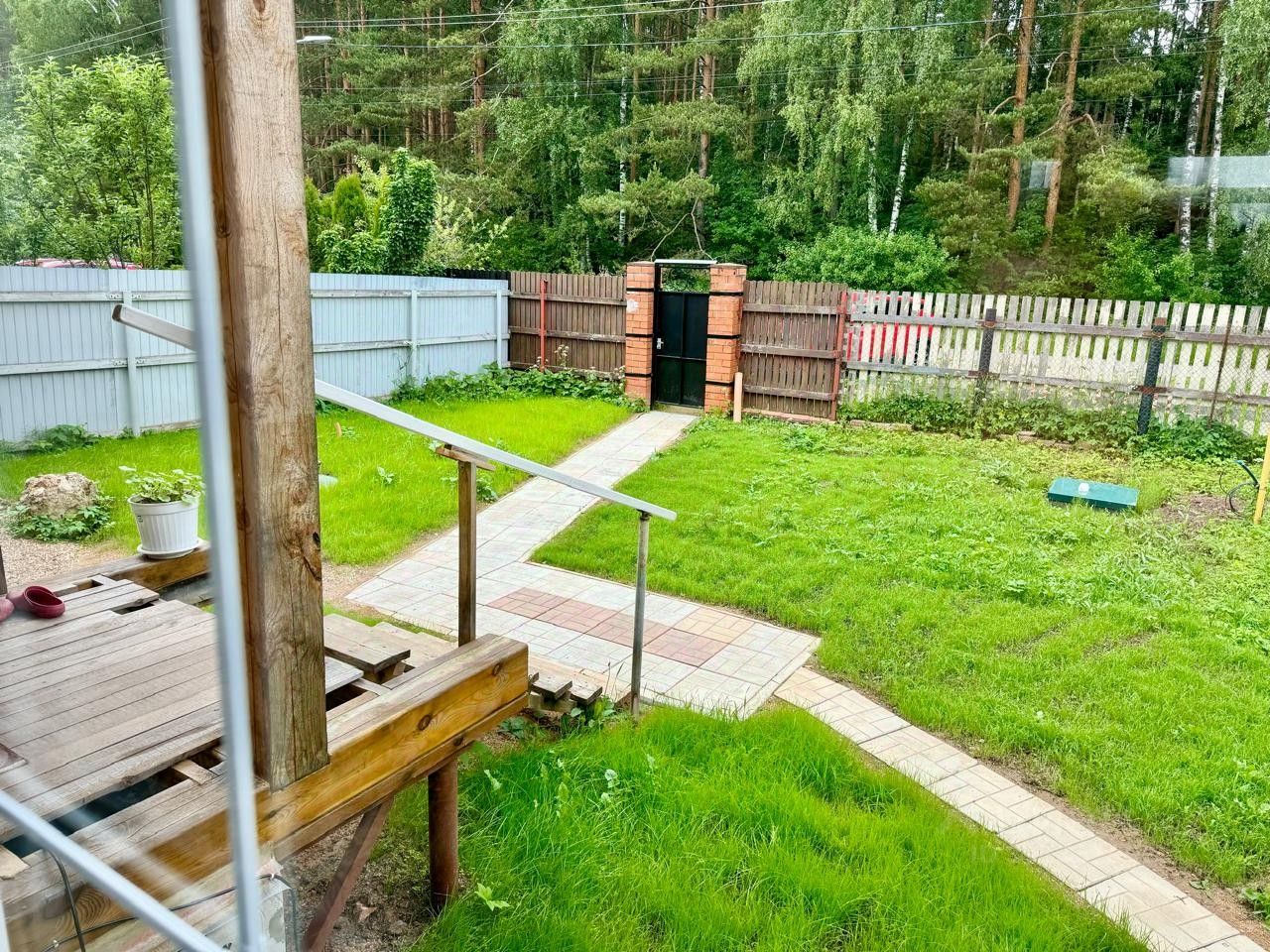 Участок ухожен: газон, грядки, цветы. Удачное расположение, участок граничит с лесом, удален от ЖД, очень тихо и красиво!