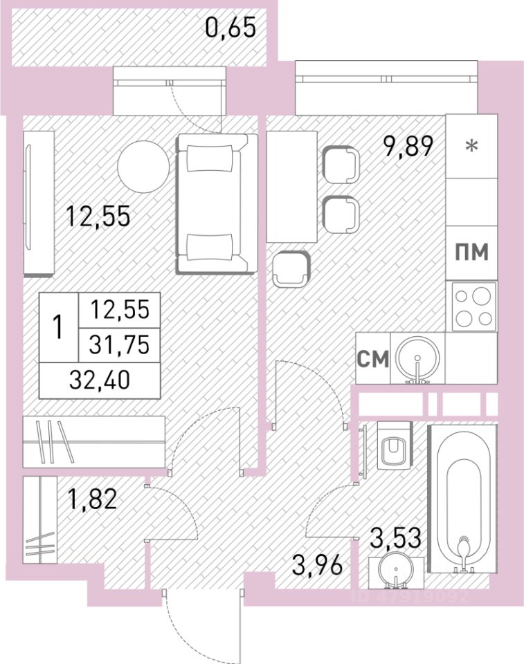 Общая площадь32 м2