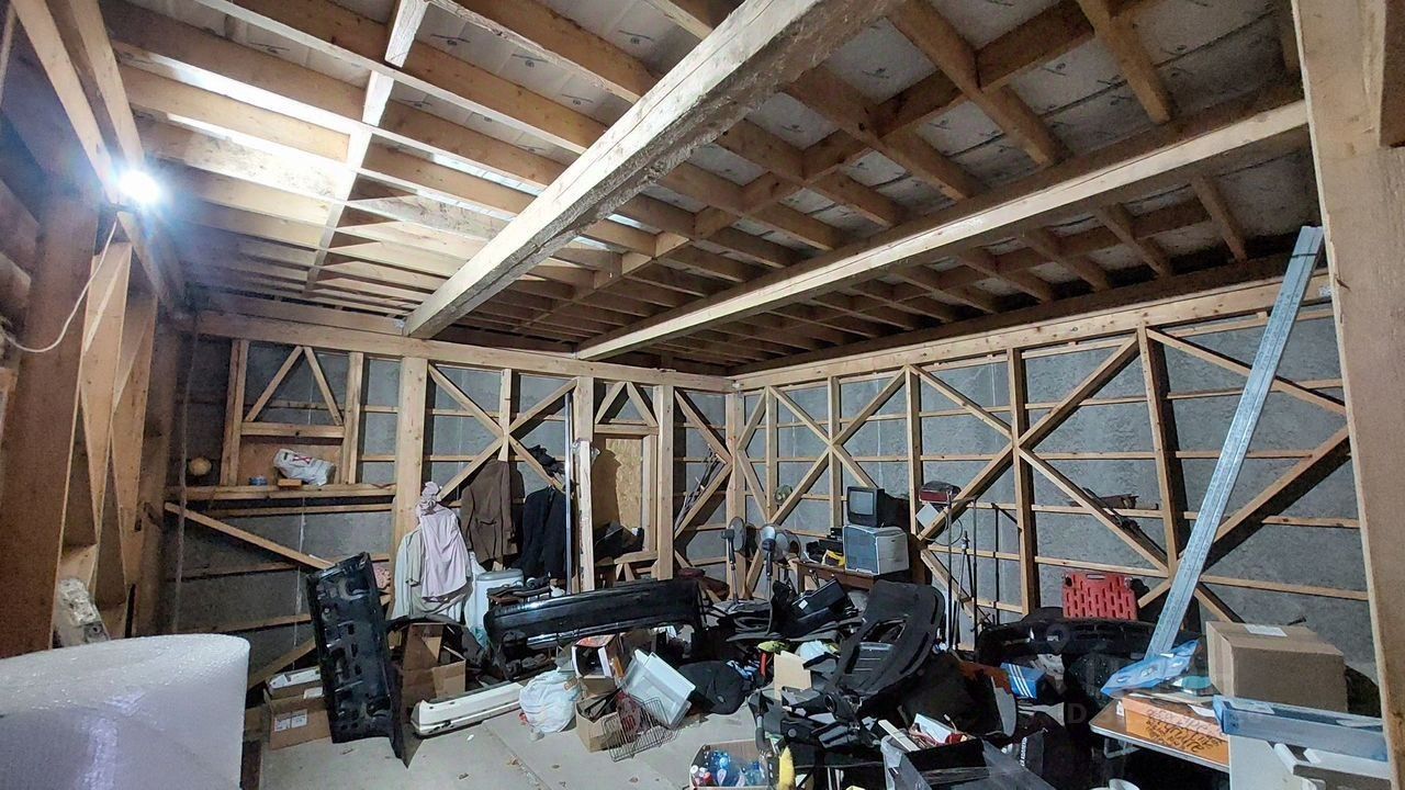 2) жилой дом общей площадью 230 м2 в состоянии незавершенной реконструкции. Изначально это был сруб советской постройки. В 2014 году дом подвергся тотальной реконструкции. От старого дома остались только стены сруба. Стены были пересажены полностью на новый столбчатый фундамент глубиной 190 см. Сделаны полностью новые перекрытия 1го и 2го этажей. Перекрытия каркасные, очень мощные, на базе доски 150х50 и бруса 200х200. Теплоизоляция перекрытий из Рокволл 15 см, в межэтажном перекрытии смонтирована качественная шумоизоляция плюс под половым настилом уложены противошумные маты. Все полы покрыты мощными листами ЦСП толщиной 32 мм. Мансарда и стропильная система были подвергнуты капитальному ремонту. Кровля из Ондулина. К срубу приделана каркасная пристройка размером 6х6 метра без несущих стен внутри. Очень мощный каркас, рассчитана так, чтобы играючи выдержать ураган и падение нескольких вековых деревьев. Пристройка стоит на столбчатом фундаменте глубиной 200 см, выполненного по технологии ТИСЭ. В дом заведены электричество 3 фазы 15 кВт и магистральный газ,