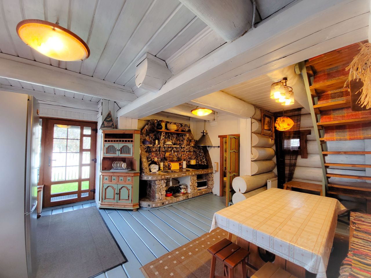 В доме: 2 спальни, гостиная-студия площадью 45 кв.м., кухня, со встроенной бытовой техникой, санузел на первом и втором этажах.
