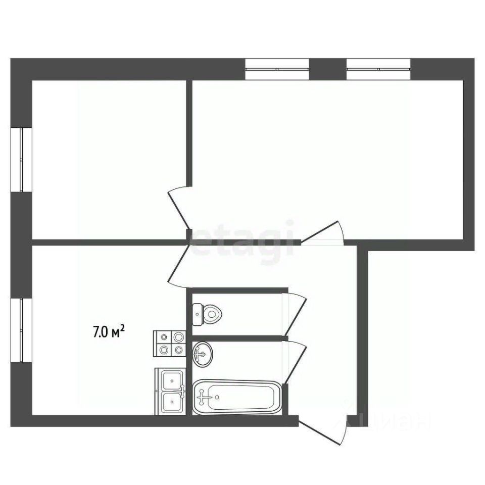 Квартира теплая и светлая, располагается на пятом этаже пятиэтажного панельного дома, одна комната изолированная и одна проходная, кухня 7 кв.м., раздельный санузел.