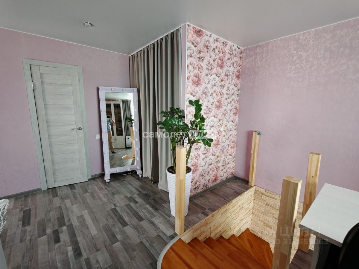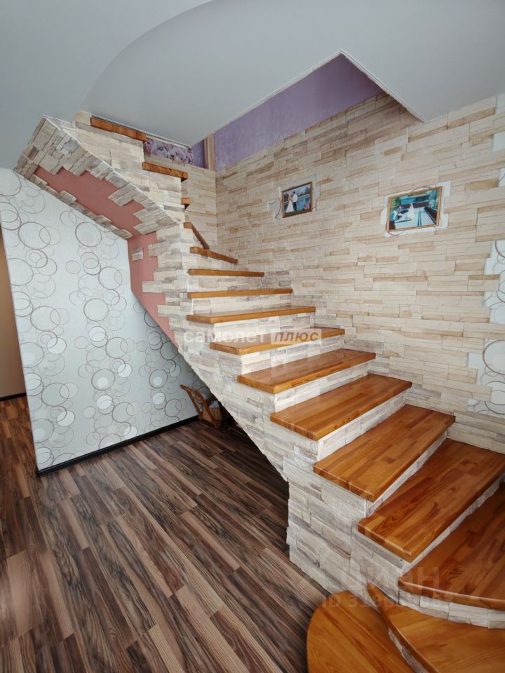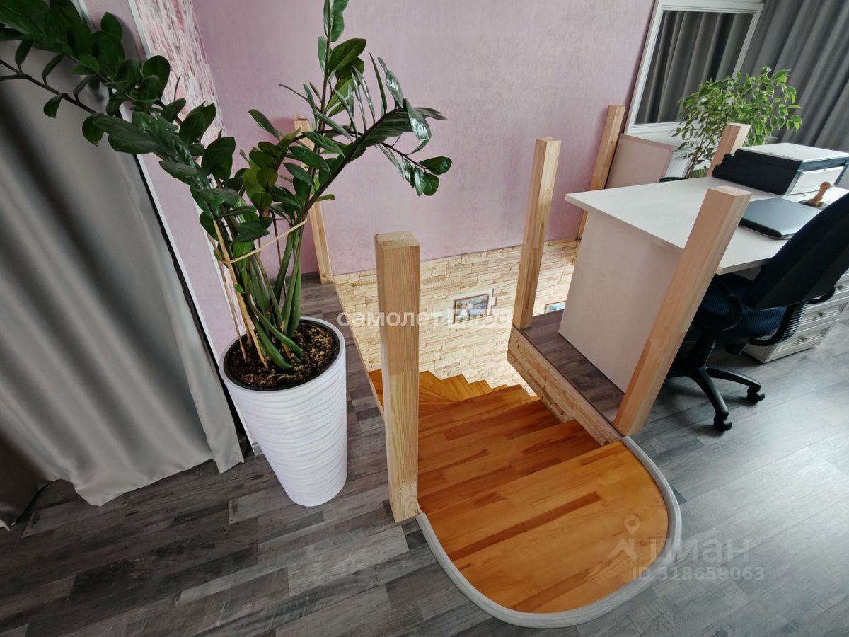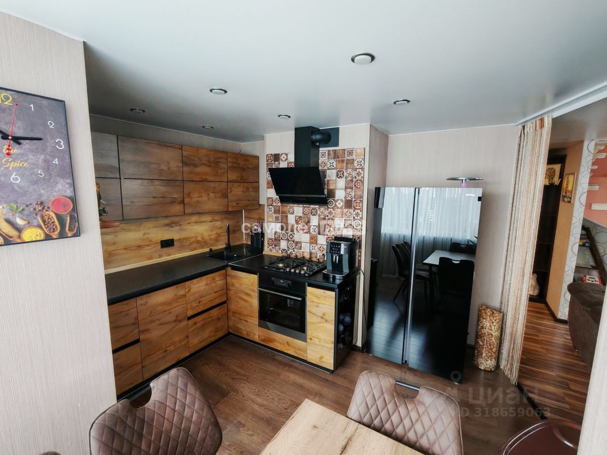 - на 1-м этаже просторная прихожая, гостиная, объединенная с кухней, оборудованной встроенной мебелью и техникой, санузел, лестница на 2-й этаж