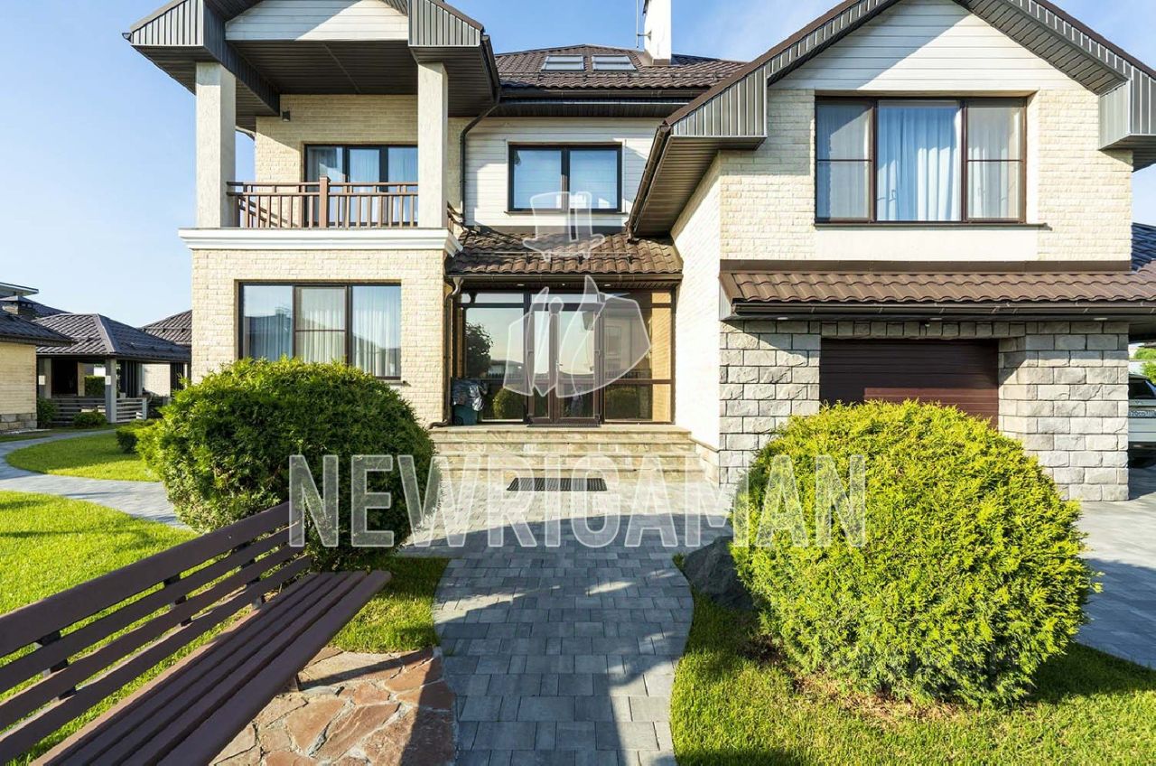 ЛОТ 80206 НР Продажа загородного дома площадью 410 кв.м. Новорижское шоссе 23 км от МКАД, КП Новорижский. Комфортный дом под ключ полностью меблирован, установлены угловая кухня HECKER (Германия) со встраиваемой техникой: холодильник и морозилка Liebherr, духовой шкаф, микроволновая печь, варочный индукционная панель, посудомоечная машины, винный шкаф фирмы Siemens. Дом построен на свайно-ленточном фундаменте. Стены выполнены из газоблоков. Для летних завтраков на первом этаже создана просторная крытая терраса. Ремонт выполнен следующим образом: гипсовые потолки: 2-х и 3-х уровневые, стены окрашены краской и декоративной штукатуркой, на полу керамогранит и инженерная доска (американский орех), биокамин, дубовая лестница со стеклянными перилами. В доме много солнечного света, потому что он правильно ориентирован по сторонам света, спланирован с высокими потолками и панорамными окнами. В течение дня солнце заглядывает в каждую комнату. В доме и на участке 13 соток расположены два гаража с крытыми парковками. Открытая летняя зона барбекю (беседка) с каменной печью (30 кв.м.) Дополнительно на участке построены: баня и спортзал с выходом на открытую террасу для отдыха на лежаках (парная, хамам, бассейн, зона отдыха, санузел, прихожая, спортзал) (86 кв.м.) Участок расположен в тихом месте, граничит лишь с двумя соседями (слева и справа), имеется дополнительная территория к участку (общественная территория между забором коттеджного поселка и участка 40х15 метров (детское футбольное поле с воротами, а также с возможностью для размещения уличного бассейна). Можно дойти пешком до канала с живописной прогулочной зоной, которая ведёт к парку с озером. На участке выполнены все необходимые работы, а именно: уложен плодородный слой грунта 30 см, уложен элитный спортивный газон, по периметру высажены туи (Брабант) высотой 2,00 метра, высажены гортензии, можжевельник, кусты спиреи, деревья береза, дуб, клен, липа, голубая ель, горная ель, сибирская пихта. Все растения имеют приличный вид, большие, полностью прижитые, установлен автополив газона и капельный полив отдельных растений. Лицевая часть участка имеет фасадный забор (монолитный, обложен клинкером и штакетником), а также электрические откатные ворота, уложена гранитная брусчатка фирмы Braer. Планировка: большая детская игровая, хозяйственное помещение для вещей. В доме расположены 4 спальни, две из которых с ванными комнатами, 3 сан/узла, просторная кухня-гостиная со вторым светом и камином, котельная-постирочная, кабинет, большая гардеробная, спа-зона с купелью, сауной и хаммамом, тренажёрный зал. Коттеджный поселок Новорижский - это элитный поселок в 23 км по Новорижскому шоссе. Поселок расположился в окружении смешанного леса, образующего естественную рекреационную зону. Тротуары и прогулочные зоны выложены брусчаткой.Внутренняя инфраструктура: детский сад, спортивная площадка, три зоны отдыха с искусственным водоемом, магазин, гостевая парковка, ремонтно-эксплуатационная служба, круглосуточная охрана, видеонаблюдение, КПП на въезде. Внешняя инфраструктура: Аутлет Новая Рига, ТЦ Княжий Двор, школа Вандер Парк, школа Экономики и права.Рядом поселки: Агаларов Эстейт, Княжье Озеро, Кембридж, Покровский Монтевиль, Риверсайд. Продажа напрямую от собственника.