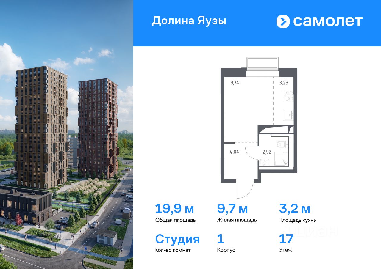 Предлагается квартира студия комфорт-класса 19,93 кв.м в корпусе 1 на 17 этаже, в ЖК ''Долина Яузы'' Квартира с чистовой отделкой. Доступность дополнительных опций уточняйте у застройщика.