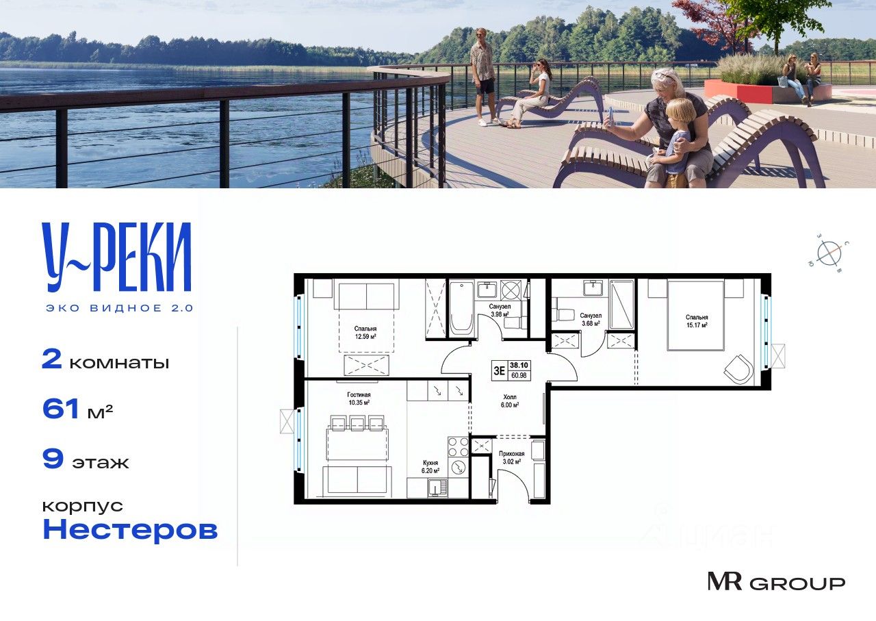 Прямая продажа от застройщика. Продаётся 2-к квартира общей площадью 61 кв. м с предчистовой отделкой в ЖК ''У реки. Эко Видное 2.0'' на 9-м этаже корпуса Нестеров. Все корпуса введены в эксплуатацию. Выдача ключей - I кв. 2025г. Жилой комплекс ''У реки'' - уникальный проект комфорт-класса, в котором применяются стандарты строительства и сервиса MR Group, характерные для проектов девелопера бизнес и премиум-классов. 17-этажный корпус ''Нестеров'' расположится на живописном берегу реки Купелинка. Из его квартир откроются захватывающие виды на реку и лес на её противоположном берегу.