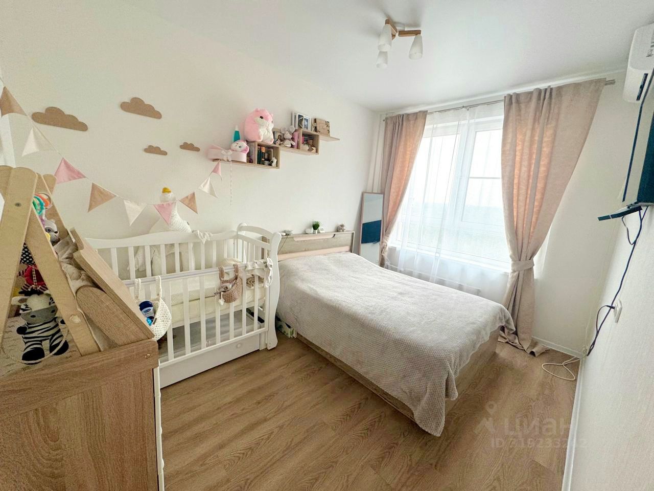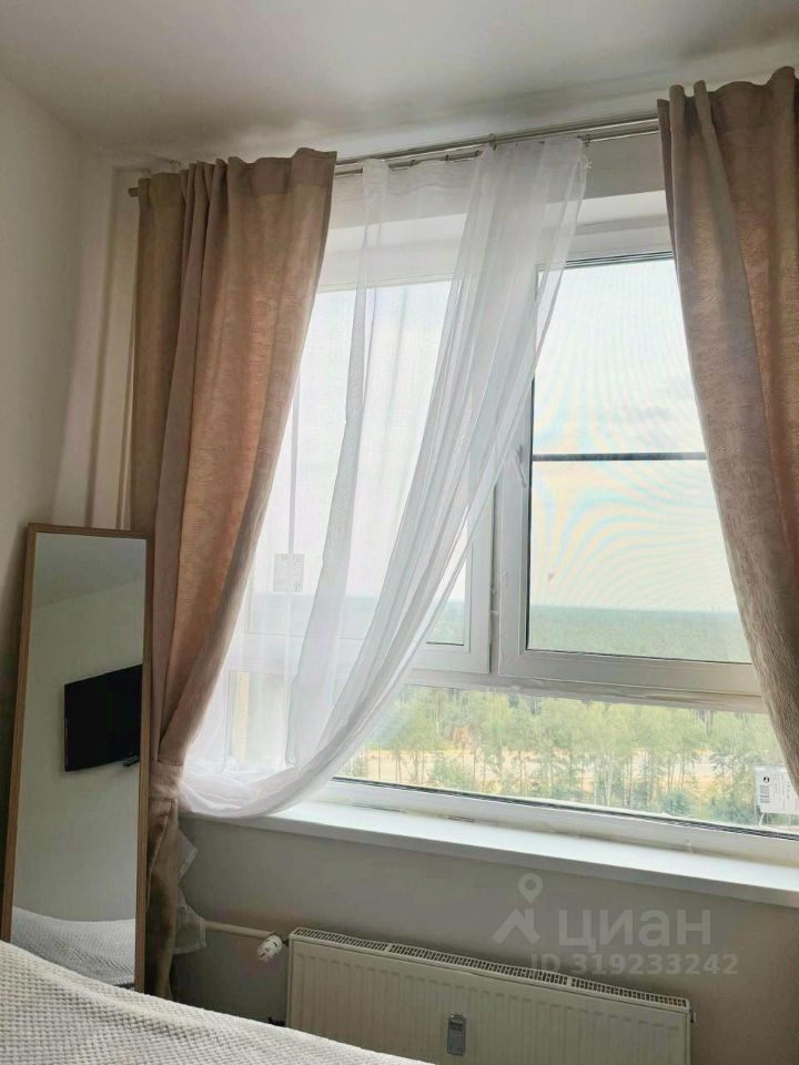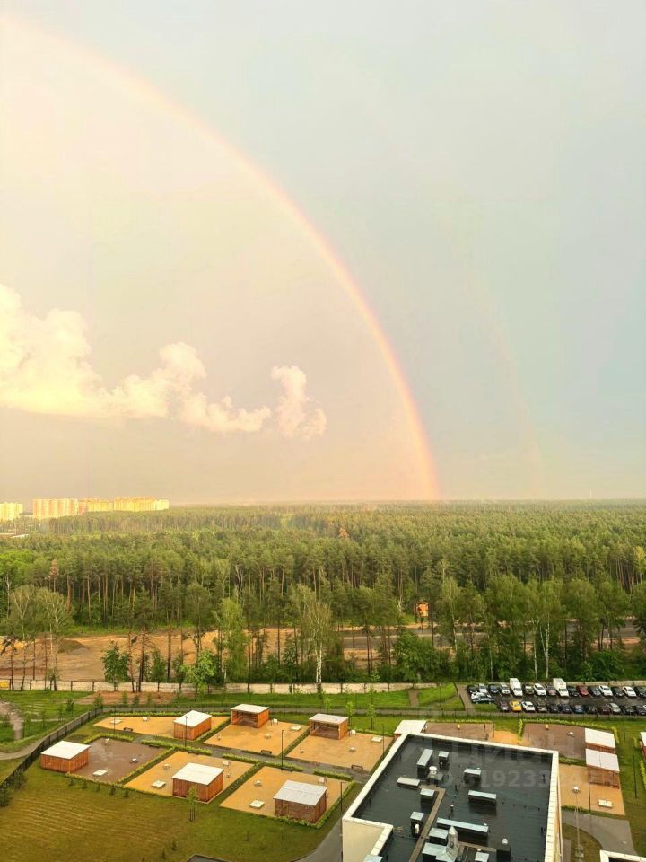 Квартира расположена на 15 этаже монолитного дома, увеличенные окна открывают вид на лес, во дворе садик, школа - через дорогу.