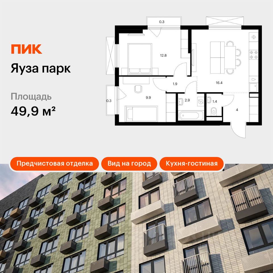 Продаётся 2-комн. квартира площадью 49,9 кв.м на 12 этаже 24 этажного дома (Корпус 10, Секция 1) проекта ПИК Яуза парк. Светлый просторный подъезд на уровне земли, функциональная планировка, большие окна, предчистовая отделка.