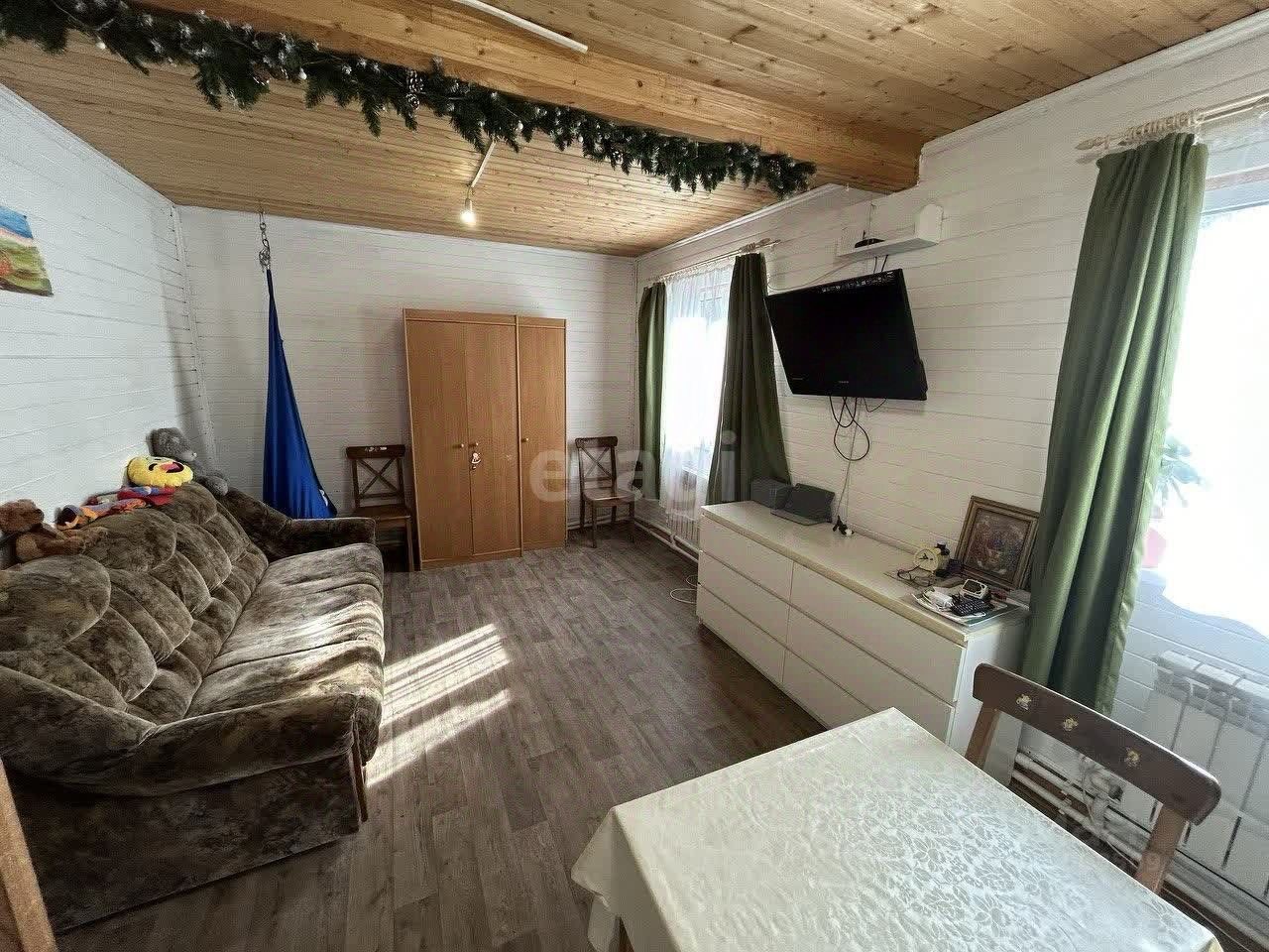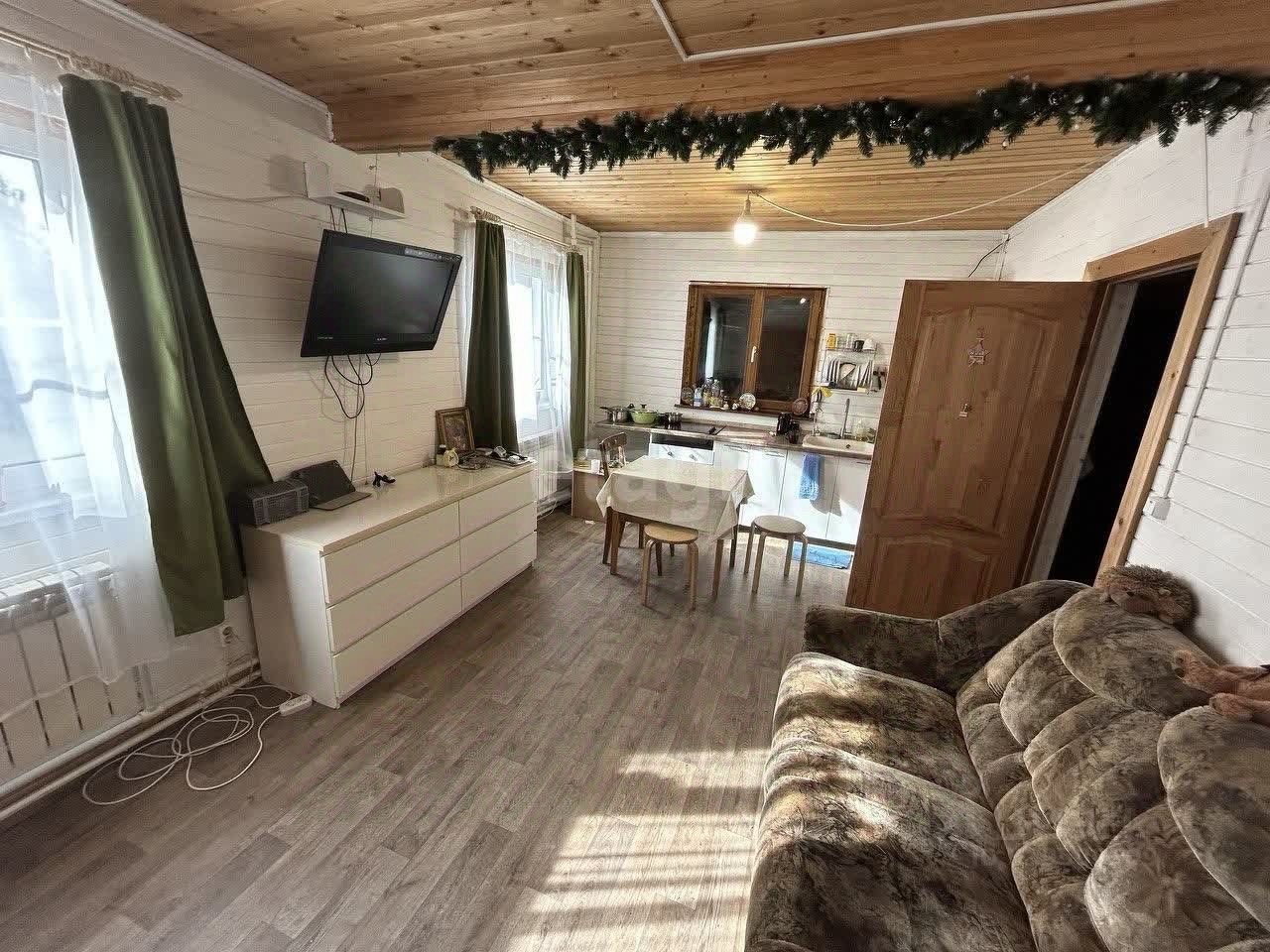 На первом этаже кухня-гостинная, комната и совмещенный санузел с душевой кабиной. На втором этаже просторная комната. Вся мебель и техника остается в доме, заезжай и живи!