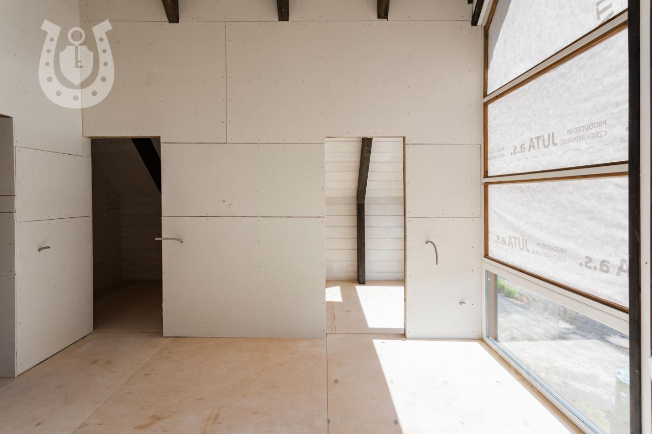 id:21123. Вашему вниманию предлагается Фахверк построенный в 2025 году. Общая площадь 134.9 м2 на участке 6.3 сотки. Дом обладает функциональным планировочным решением: 1 этаж: зона кухни-гостиной 16.5 м2, терраса гостиной 23 м2, спальня 11 м2 с собственной террасой 11 м2, коридор-гардероб 7 м2, сан.узел 5.3 м2. 2 этаж: мастер спальня 14.8 м2, со своим сан.узлом 4 м2 и гардероб 5 м2, спальня 13.5 м со своим балконом 11.4 м2.