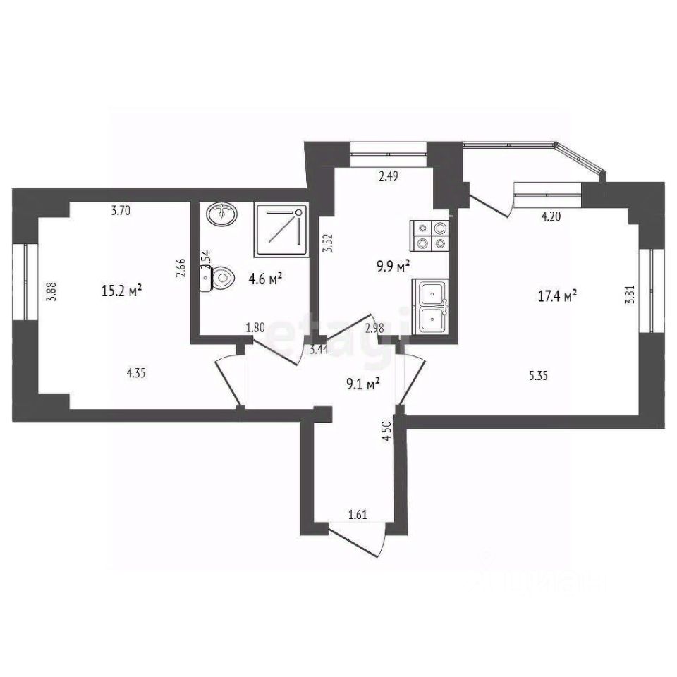 Общая площадь56,1 м2