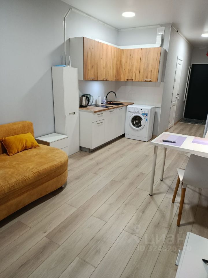 В студии есть все необходимое для комфортного проживания: мебель в комнате и на кухне, современная техника — кондиционер, холодильник, телевизор и стиральная машина. Ванная комната оборудована душевой кабиной, что создает ощущение уюта и комфорта.