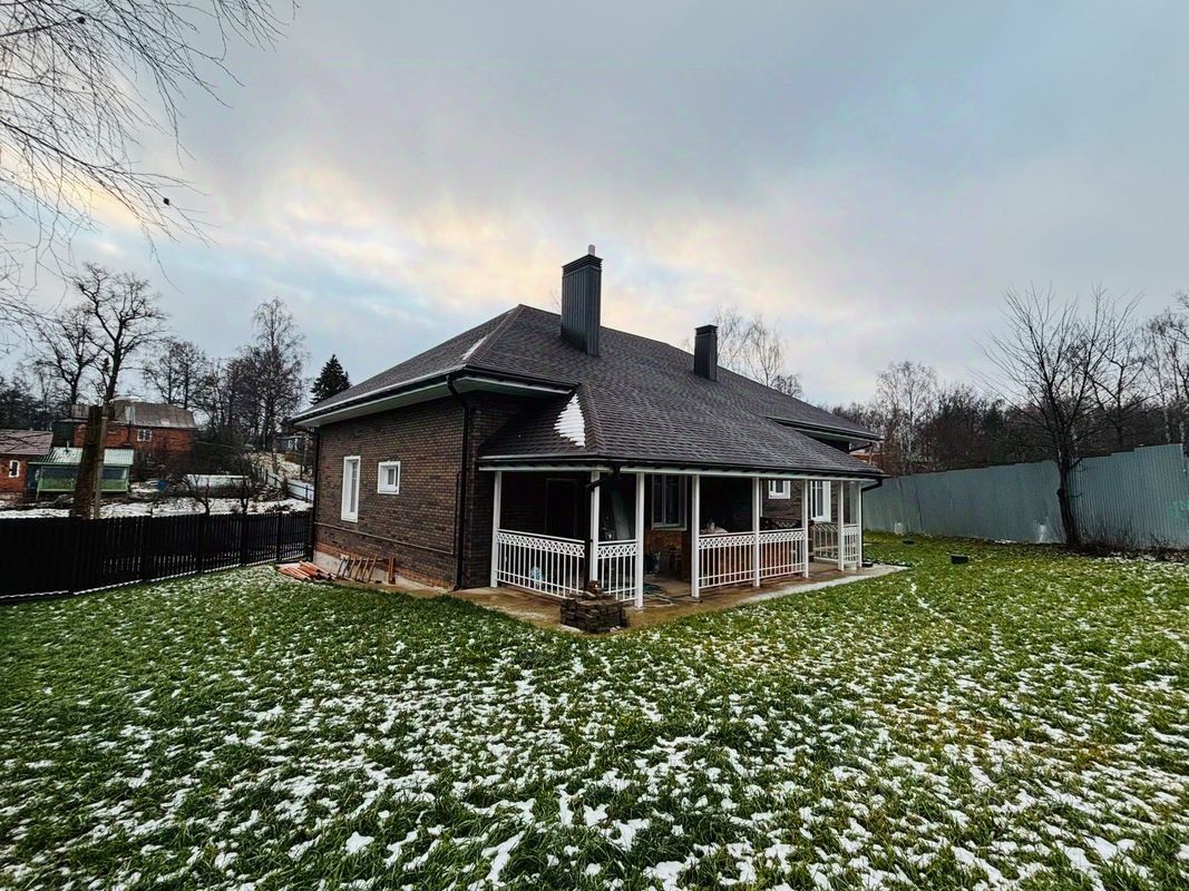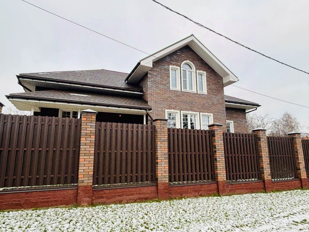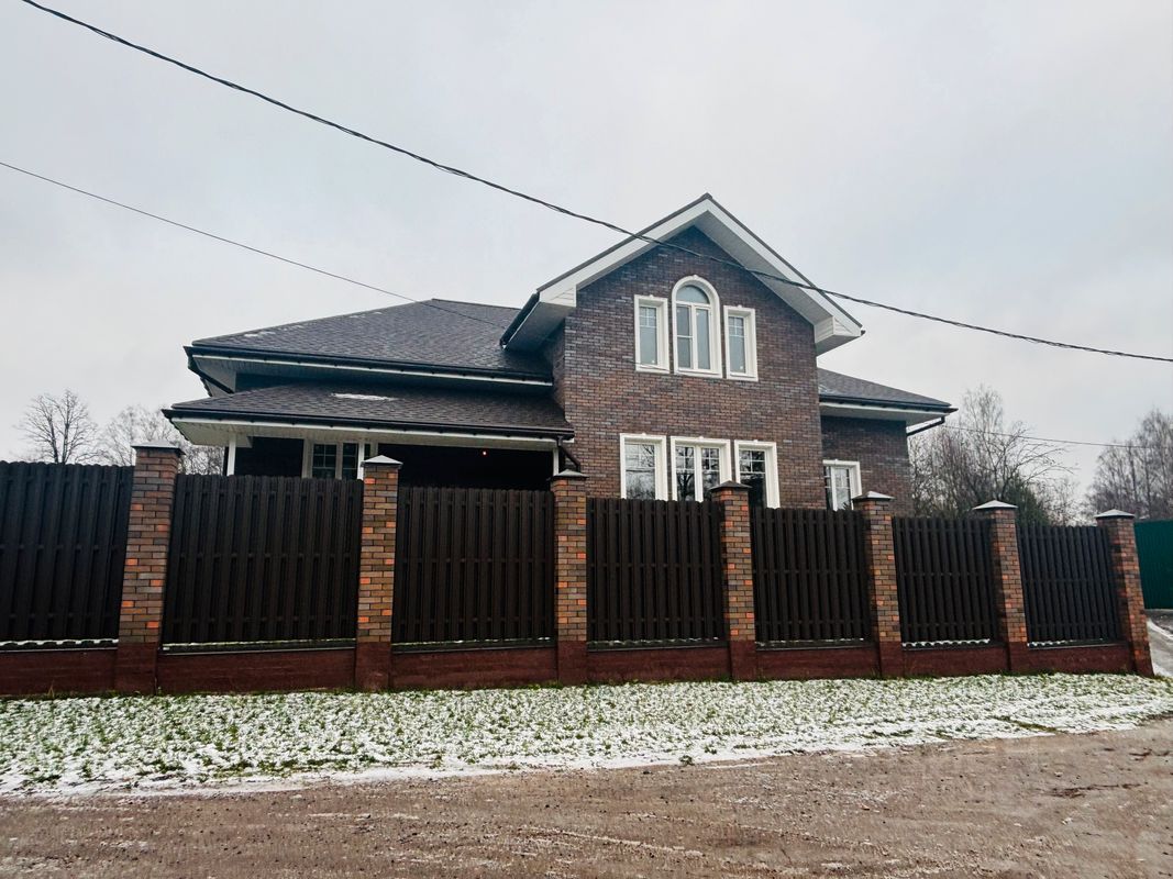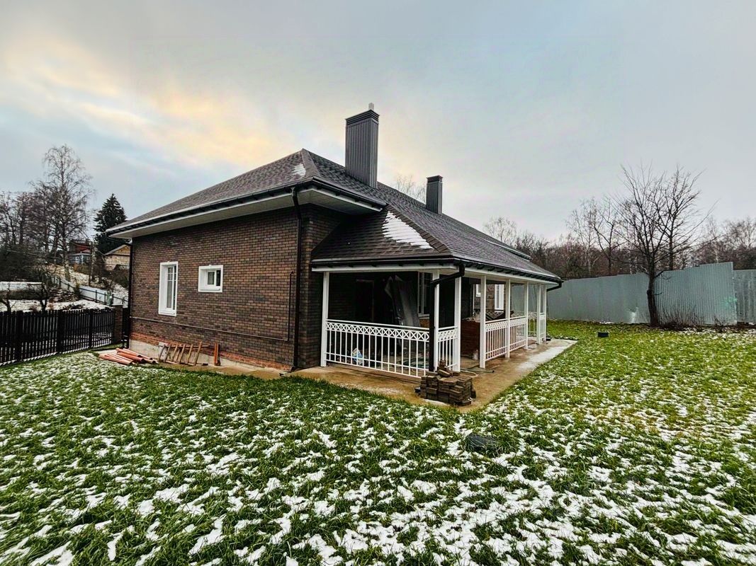 Дом построен из кирпича и газосиликатных блоков. Толщина стены 560 мм. До начала строительства фундамента были проведены геологические работы на участке, на основании этих работ, выполнен расчет фундамента. Фундамент монолитно-армированная лента. Фундамент выполнен по проекту инженера конструктора. Проект выполнен опытным архитектором г. Сергиева Посада. Перекрытие цокольного этажа и первого этажа выполнено с помощью сборного железобетона. Высота потолков 3,3 м. Канализация в доме выполнена системой современной очистки сточных вод Топас.