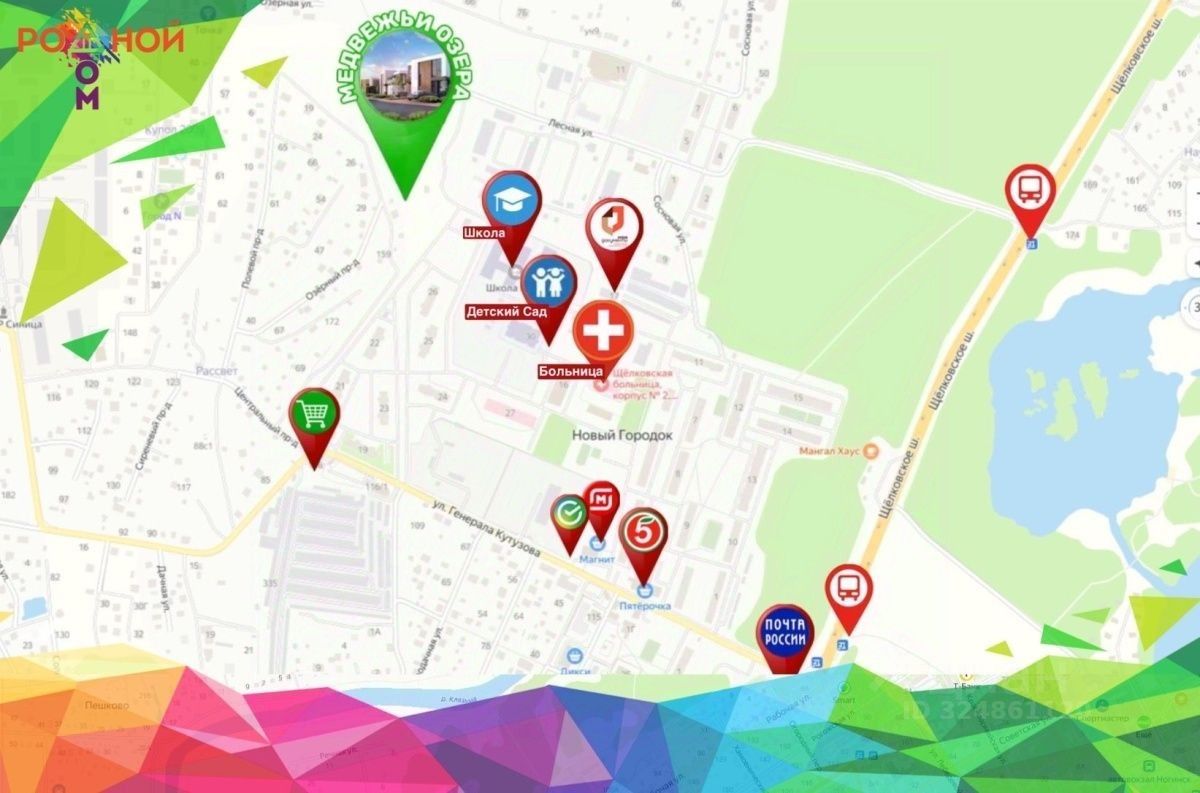 Адрес посёлка: Московская область, Щёлково городской округ, д. Медвежьи Озёра, ул. Лесная