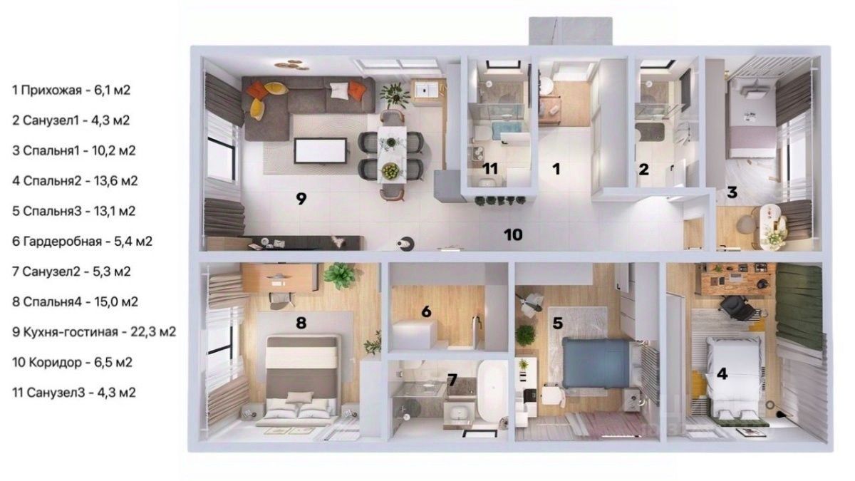 4 спальни, -