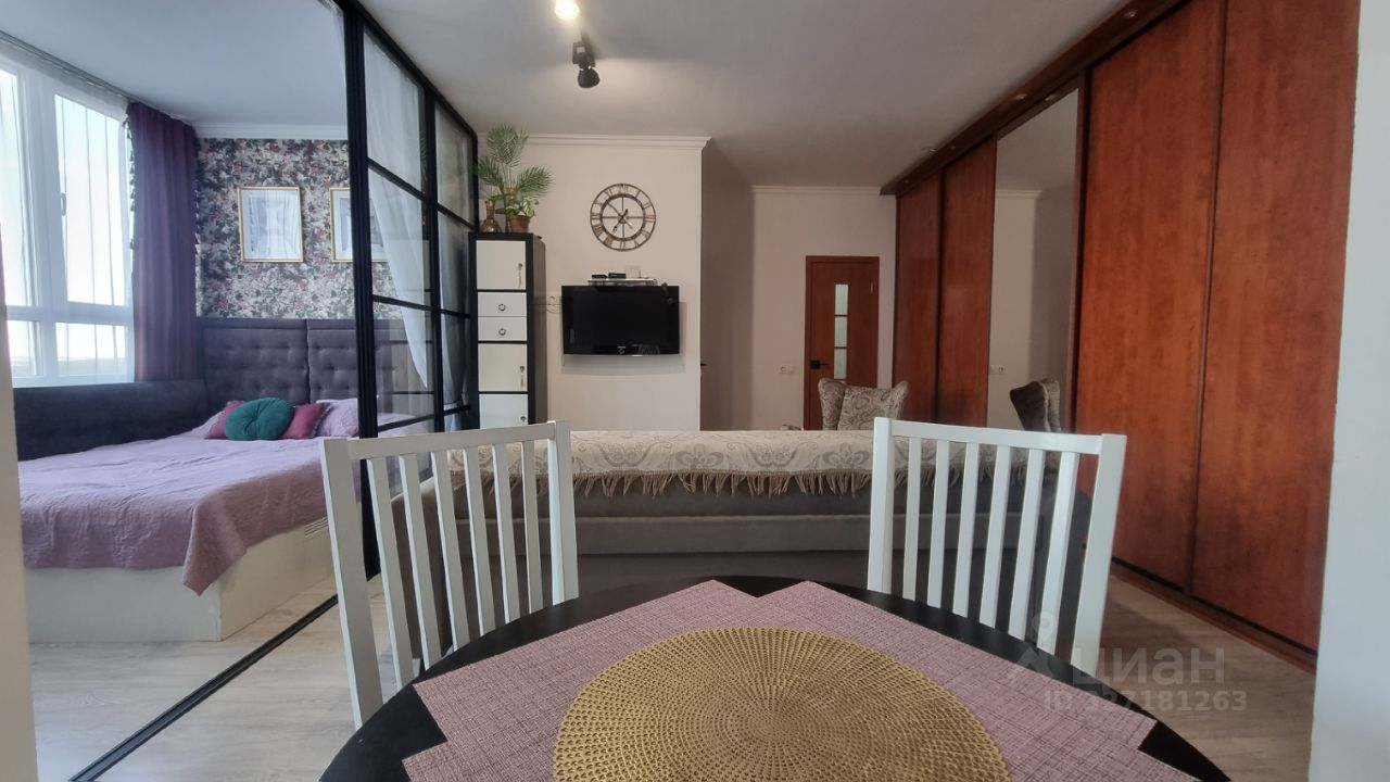 Продаётся красивая современная евродвушка 44м² с мебелью и техникой. По факту это даже евротрёшка: просторная кухня-гостинная(25м²), отдельная детская комната(10м²) и взрослая спальня за стеклянной сдвижной перегородкой(5,5м² безопасное закаленное стекло). В каждой комнате окно! Санузел совмещенный, очень просторный. В квартире много света и воздуха. Никаких натяжных потолков - высота стен максимальная(2,7м). Установлен кондиционер. Планировка супер продуманная и удобная. Очень много мест хранения, включая отдельный коридор на две квартиры! Дом теплый, кирпично-монолитный. Мусоропровода нет - соответственно нет никаких насекомых и грызунов. Соседи идеальные, закрытый двор, стоянка под шлагбаумом.